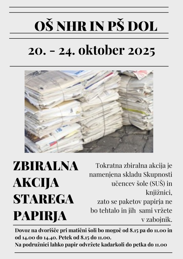 Zbiralna akcija je namenjena skladu Skupnosti učencev šole (SUŠ) in knjižnici.